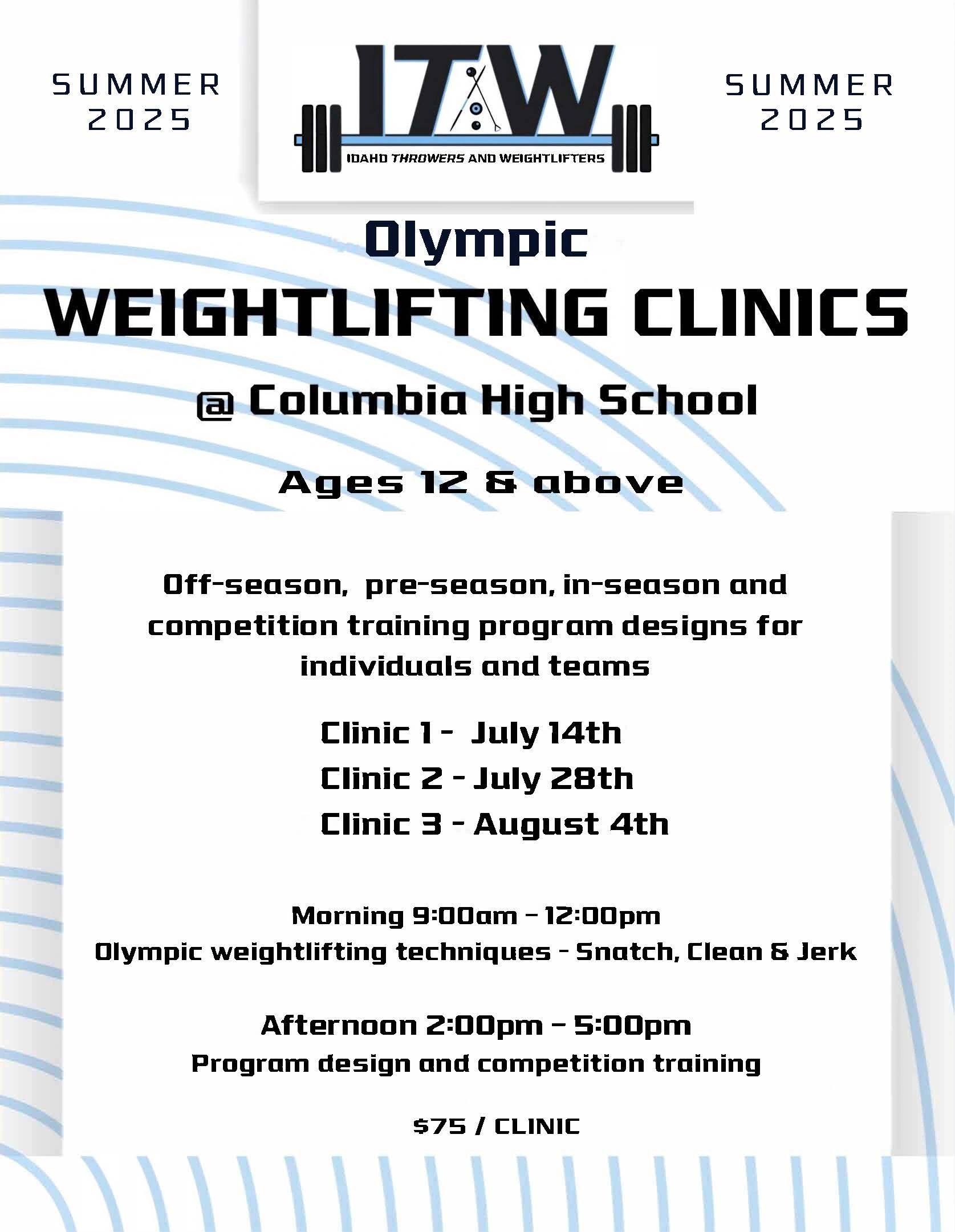 The mission of the Idaho Throwers and Weightlifting Training Center (ITW) is to provide an opportunity for athletes of all ages and skill levels to learn and understand the proper techniques and program designs of the throws (discus, hammer, javelin, shot put), Olympic Weightlifting, and general athleticism.